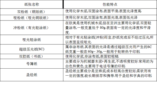 偷懶先貼一張表:關于主要的紙張種類和特點。